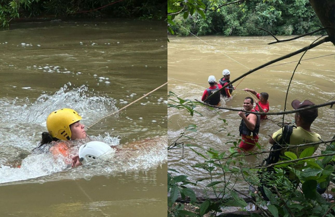 Quarenta e quatro turistas e quatro guias precisaram ser resgatados na sexta-feira (2) após uma cheia repentina do Rio Limoeiro surpreender visitantes e funcionários em um atrativo turístico localizado na região do Parque Nacional da Serra da Bodoquena, em Mato Grosso do Sul.