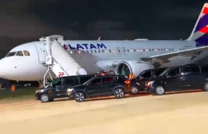 Enquanto isso, os integrantes da banda deixaram a aeronave e seguiram diretamente para um carro que já os aguardava na pista, sem passar pela área comum do terminal.