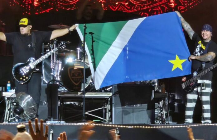 Raimundos não erra o nome de MS, leva bandeira do Estado ao palco e faz público cantar em coro