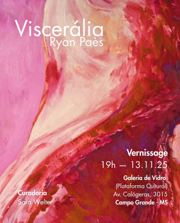 Campo Grande recebe, a partir desta quinta (13), a exposição Viscerália, do artista visual Ryan Paes, com curadoria da também artista e pesquisadora Sara Welter, a Syunoi. A vernissage (pré-inauguração) acontece às 19h, na Galeria de Vidro, localizada na Plataforma Cultural na Avenida Calógeras 3015 no centro de Campo Grande, e promete instigar o público ao propor um olhar profundo sobre a carne, tema central que atravessa as pinturas, performances e reflexões do autor.
