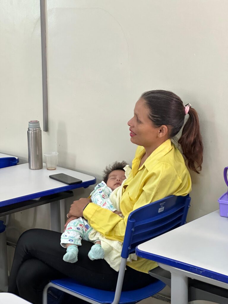Thaís, que tem uma bebê de dois meses, destaca o acolhimento da equipe. “Poder levar minha filha para a sala foi essencial para não desistir”, conta.A estudante Rafaela Gomes, também mãe de um bebê pequeno, reforça a importância do apoio coletivo. “Criamos uma rede de incentivo entre professoras, colegas e a própria Funsat. Isso faz toda a diferença”, diz.