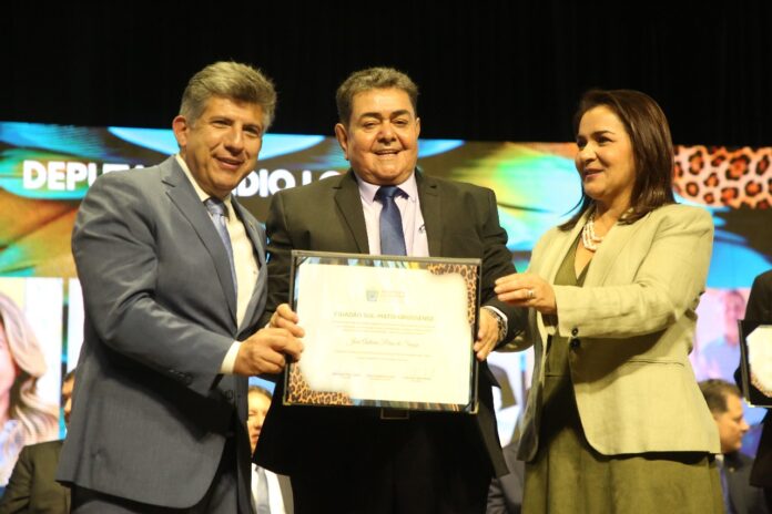 O ex-vereador e ex-presidente da Câmara Municipal de Mundo Novo, José Antônio Pires de Souza, conhecido como Zé Bocão, foi agraciado com o título de Cidadão de Mato Grosso do Sul. A honraria foi entregue nesta quarta-feira (30) pela Assembleia Legislativa de Mato Grosso do Sul (ALEMS), por indicação do deputado estadual Lidio Lopes.