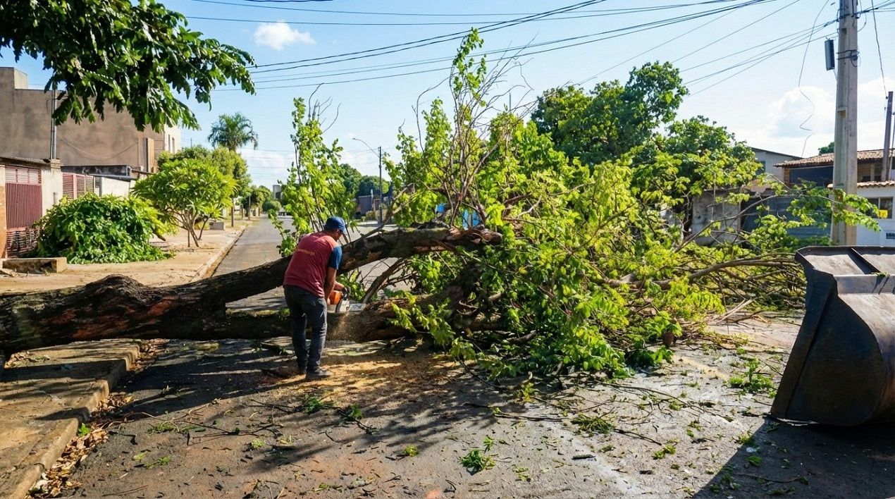 Os impactos do forte temporal que atingiu Dourados na noite da última sexta-feira foram reduzidos graças a um conjunto de medidas preventivas adotadas pela Prefeitura e à atuação imediata das equipes municipais. Ventos que chegaram a cerca de 100 km/h provocaram a queda de 14 árvores de médio e grande porte em diferentes regiões da cidade, mas os prejuízos foram considerados limitados diante da intensidade do fenômeno.
