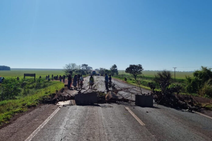 Na manhã desta segunda-feira (25), indígenas bloquearam um trecho da rodovia MS-156, em Dourados, reivindicando melhorias no abastecimento de água para as aldeias Jaguapiru, Bororó e Panambizinho.