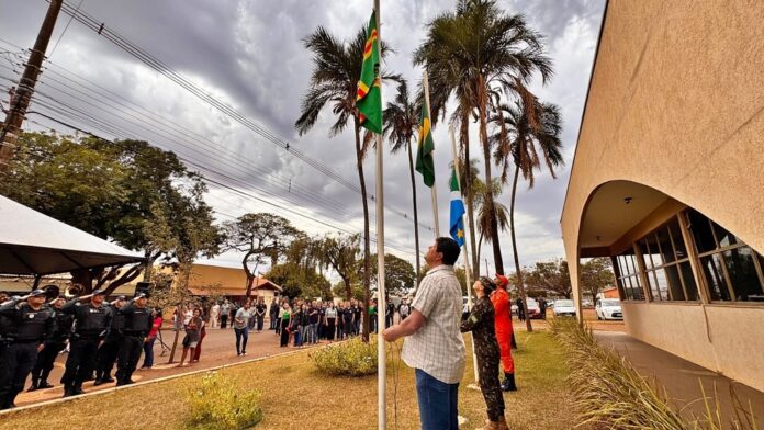 Na manhã desta segunda-feira (1º), o prefeito de Sidrolândia, Rodrigo Basso, deu início à programação da Semana da Pátria 2025 com uma cerimônia cívica no Paço Municipal. O evento contou com o hasteamento das bandeiras ao som da Banda Municipal e reuniu autoridades civis e militares, servidores públicos, estudantes e o deputado estadual Renato Câmara