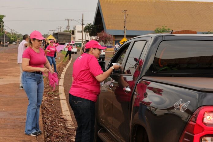 A Prefeitura de Dourados deu início à campanha Outubro Rosa com uma ação simbólica na manhã desta sexta-feira (3), em Vila Vargas. A blitz educativa, realizada na BR-163 pela Unidade Básica de Saúde (UBS) do distrito em parceria com o Hospital do Amor e com apoio da concessionária Motiva, levou orientações sobre prevenção ao câncer de mama e de colo do útero diretamente a motoristas e passageiros.
