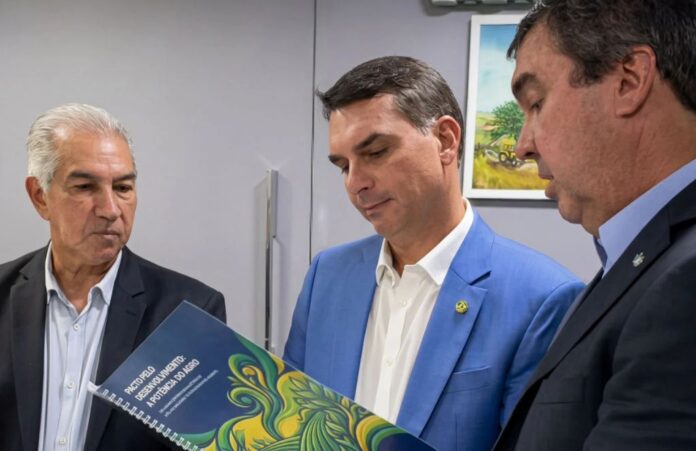 O documento entregue pelo governador, Eduardo Riedel (PP), e pelo ex-governador e presidente estadual do PL, Reinaldo Azambuja ao senador Flávio Bolsonaro deverá servir de base para a elaboração das propostas voltadas ao agronegócio dentro do plano de governo do parlamentar para a disputa presidencial. A entrega ocorreu em Brasília e reúne diretrizes formuladas por representantes do setor produtivo com foco no fortalecimento do agro brasileiro.