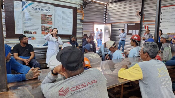 Cerca de 140 trabalhadores da construção civil receberam orientações de saúde na manhã desta quarta-feira (19), no canteiro de obras do Residencial Belas Artes, na Vila Planalto. A atividade integra o Novembro Azul, campanha nacional voltada à prevenção do câncer de próstata, e foi organizada pela Cesari Empreendimentos em parceria com a Secretaria Municipal de Saúde (Sesau).