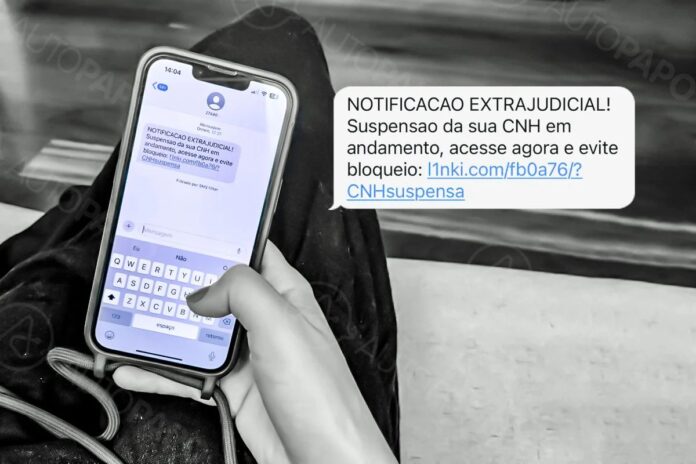 Os golpistas enviam notificações falsas informando que a Carteira Nacional de Habilitação (CNH) do destinatário está em processo de suspensão.