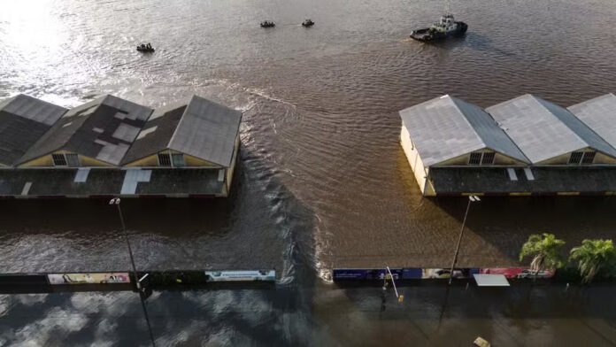 O nível do lago Guaíba caiu na madrugada deste sábado (1º), ficando abaixo da cota de inundação na Usina do Gasômetro, em Porto Alegre. Isso significa que o lago não transborda mais e voltou ao seu leito natural após um mês, mas o estado de alerta permanece.